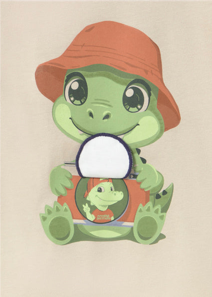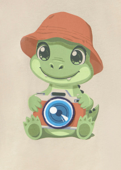 The Mayoral beige interactive camera t-shirt for boys features a fun and playful dinosaur design with an interactive camera detail that sparks curiosity and imagination. Crafted from soft, comfortable fabric, this t-shirt is perfect for everyday wear, playtime, and casual outings.
